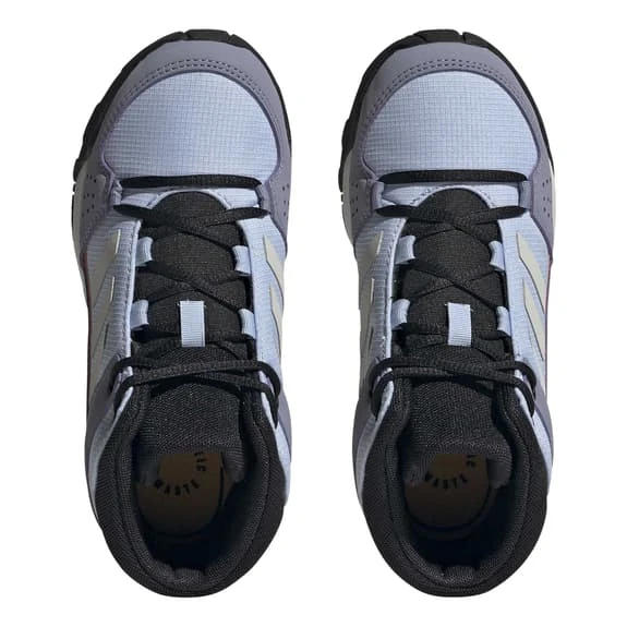 The adidas Terrex Hyperhiker Mid boots for kids feature a lightweight design that lets you explore new trails in comfort. The Traxion rubber outsole gives you the grip you need to move over slippery rocks and roots with confidence. The cushioned midsole and ripstop upper combine to keep your feet dry, protected and comfortable on your adventures in the woods. The top contains at least 50% recycled materials. Their aim is to come up with yet another solution to help eliminate plastic waste.