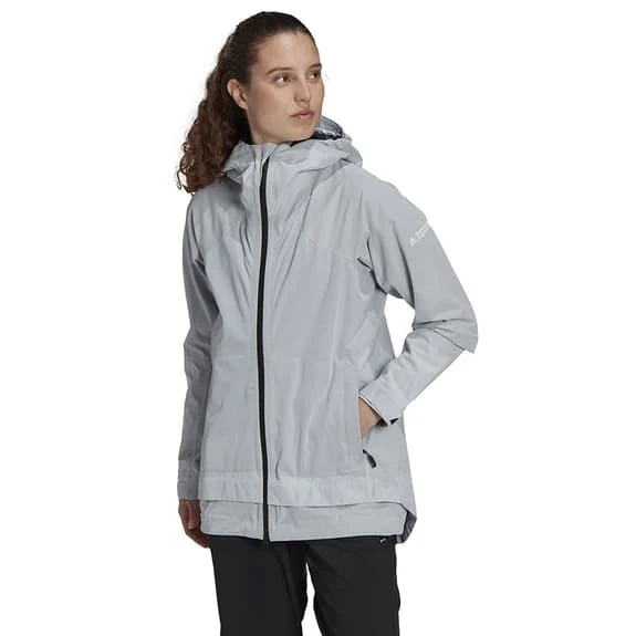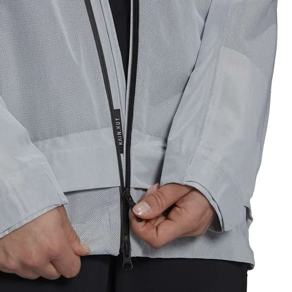 The adidas Women’s Terrex Primeknit RAIN.RDY Jacket features a hybrid design that promotes ventilation and retains warmth. The ultra-stretch adidas Primeknit fabric ensures greater freedom of movement. RAIN.RDY technology keeps your skin dry in rain and snow. Strategically placed seamless zones combine reinforcement and performance with superior comfort to eliminate distractions. Its 2.5-layer design is lightweight, breathable and foldable. Lightweight and compact design can be easily folded and stored in your backpack when the sun comes out again.