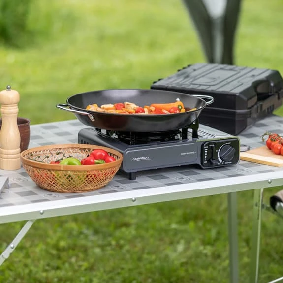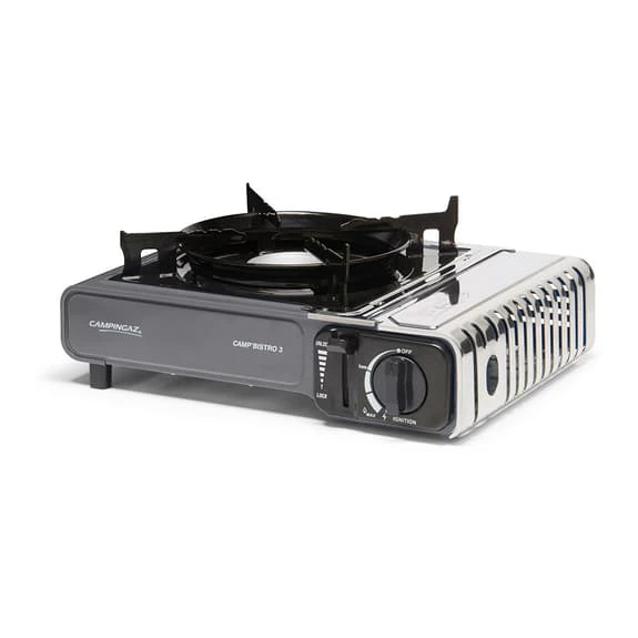 The Campingaz Camp’bistro 3 stove is the latest version of the Campingaz story. With 2 integrated safety systems, a stainless steel cartridge lid and an improved pan support, the stability and safe use of the stove is guaranteed. This robust stove comes with its own hard plastic case for easy transport and storage.