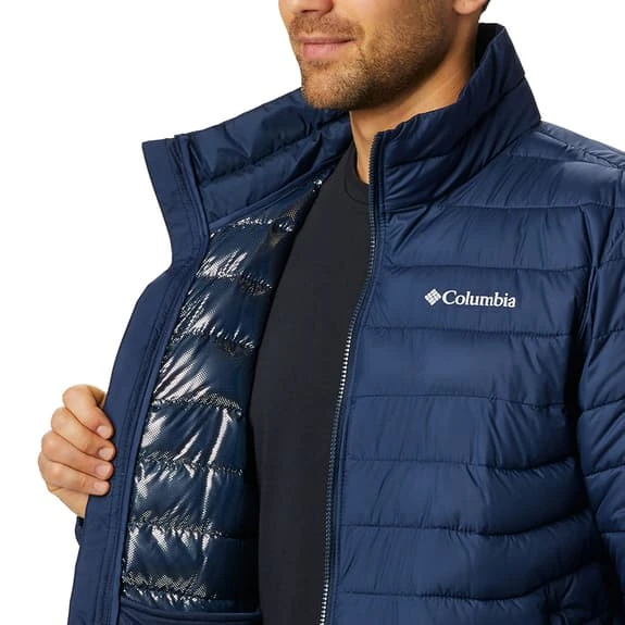 The Columbia Powder Lite jacket features a reflective thermal lining and water repellent fabric. The chin guard, side zip pockets and inside zippered pocket provide extra protection for you and your valuables. The adjustable hem with girdle allows a perfect fit.