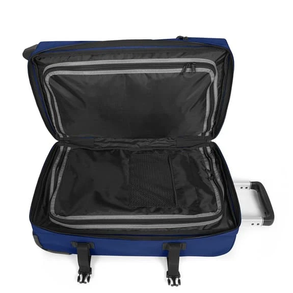 The Eastpak Transit’r S trolley is the revamped model of the wheeled suitcase with a stylish classic camouflage print. Fill the double compartments and securely store your belongings with the integrated padlock. This rugged case features aluminium tubing, protective non-slip studs and stylish finishes including contrasting grey piping, mesh detailing and diamond embossing on the handle.