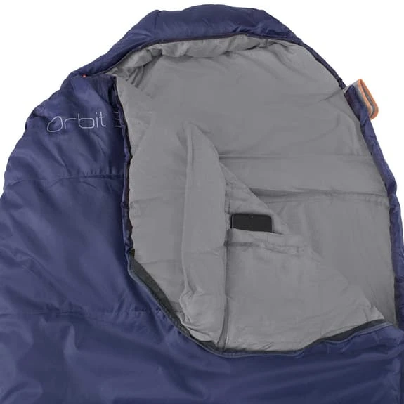 The Easy Camp Orbit 300 +2C sleeping bag offers warmth and comfort with all the features to adapt to different terrains. The hood can be adjusted on cold nights for a warmer feeling. The brushed polyester lining is really comfortable and feels warm next to the skin, while the polyester cover is tough.