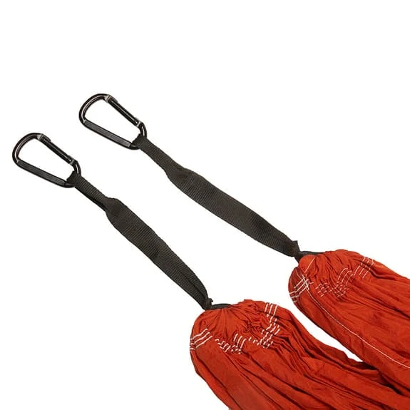 The Grand Canyon Bass hammock is easy to carry around thanks to its compact design and low weight of 440 g. It comes with a set of carabiners, two 2.5 m straps and a pair of tree protectors, i.e. tube-shaped inserts to prevent the bark of the trees you hang from coming off or being cut.