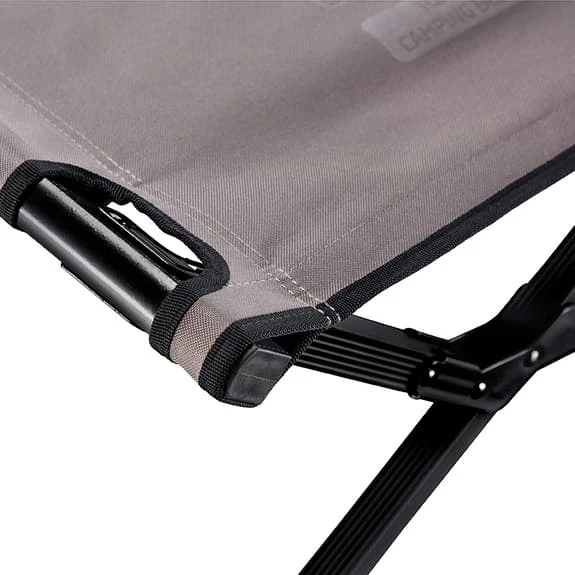 The Grand Canyon Topaz M folding bed is particularly robust and consists of strong, reinforced aluminium frames and is finished with a durable polyester Oxford fabric. Unlike most camping beds, the top fabric extends over the entire surface of the Topaz camping bed, so no bars, whether at the head or foot, will reduce its usable area. By eliminating these bars, Grand Canyon has also optimised the assembly of this folding bed: just unfold the bed and attach the legs. Ready!