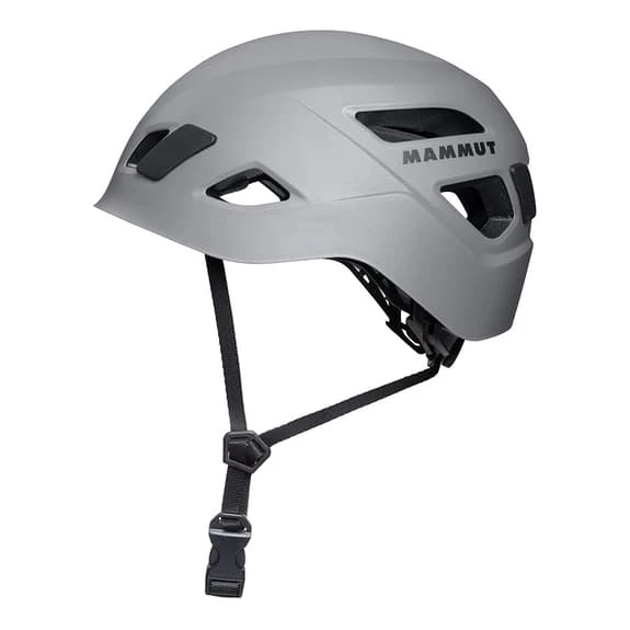 The Mammut Skywalker 3.0 Helmet is a resistant and versatile helmet for all types of climbing adventures. Its design features a cutting-edge combination of EPP and EPS foams in a sturdy ABS hard shell. The foam padding that covers the entire interior offers optimal protection against side, front or rear impacts, up to the edge of the helmet. The helmet is compact and fits comfortably on the head. Ventilation openings prevent overheating, and the wheel adjustment system allows you to adjust the helmet to suit all head sizes.