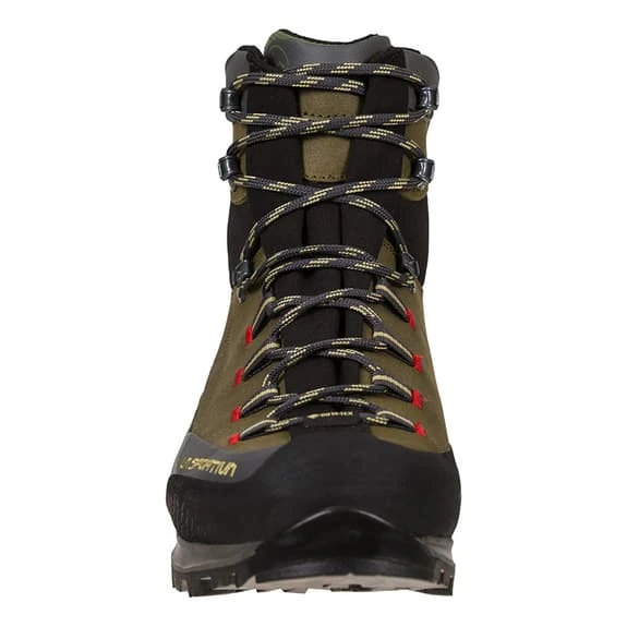 The La Sportiva Trango TRK Leather GORE-TEX boots are perfect for trekking and backpacking. These boots are differentiated from all other models of the brand thanks to its innovative waterproof system, together with an exterior totally resistant to abrasion. The GORE-TEX Performance Comfort membrane guarantees breathability and impermeability, the 3D Flex system applied to the heel provides a secure support and allows maximum control in rough terrain. The gradual system of gradual cords allows a perfect regulation of the volume, while the sole Vibram includes Climbing Zone in the tip, ideal for via ferratas. The design of this shoe with La Sportiva technology combines comfort, protection and safety in the mountains. Design patented by the brand.