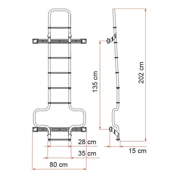 The Fiamma Deluxe DJ ladder comes complete with Fixing Bars for safe mounting on the left vehicle door. It can also be installed on the following vehicles: Citroën Jumper and Peugeot Boxer from 2006 and Ford Transit models with two rear doors from 2006 until 2011. All Fiamma ladders have 30 mm diameter tubes, 2 mm thick, in anodized aluminium.