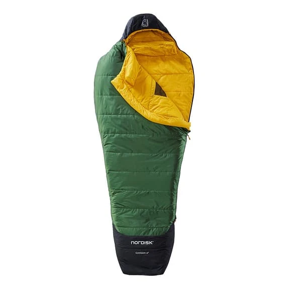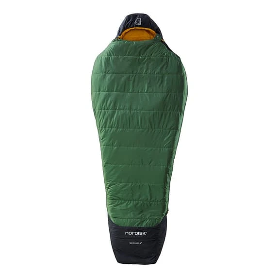 The Nordisk Gormsson Mummy L -2C sleeping bag is a classic 3-season sleeping bag in the shape of a mummy. The hood shape is 3D with a hidden drawstring for a snug fit on a cold night. Keep warm in your bag with the freedom of movement of both arms with the secondary side zip. The bag has a durable rip-stop cover, a high-quality Norguard S-PO 85 fibre filling and a Soft Touch lining. The foot box offers easy ventilation to allow your feet to cool down. An internal thermal collar provides additional warmth when needed.
