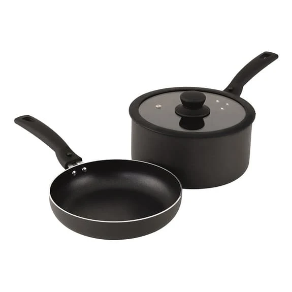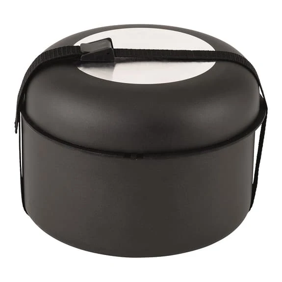 The Outwell Culinary pan + saucepan M has a 2.5L pan and a 20 cm tray that doubles as a pot lid with soft sealing when cooking. A strap for storage is included as well as them both having a robust, removable and soft to the touch handle.
