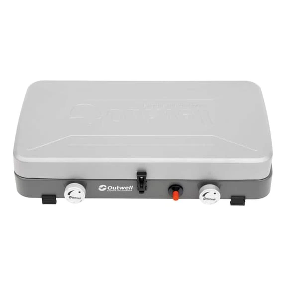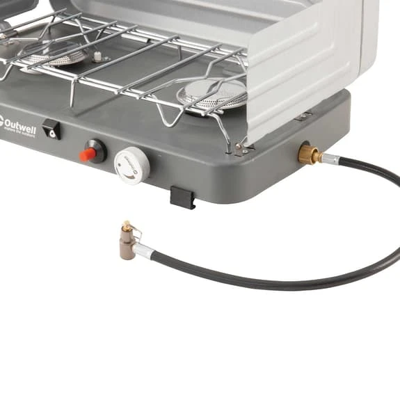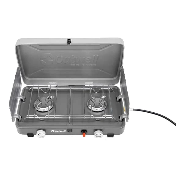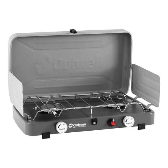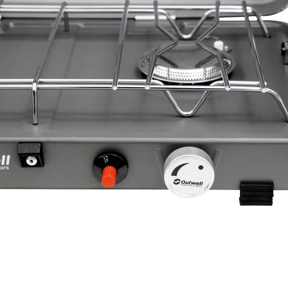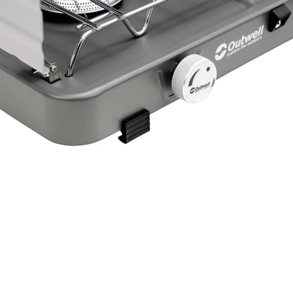 The Outwell Olida 2 burner portable cooker EN417 makes the combination of flexible steel braided hoses with automatic shut-off and small, practical gas cartridges an unbeatable combination. The cooker has individually controlled burners, the plastic feet provide stability and the optimal splash guard ensures safe cooking.