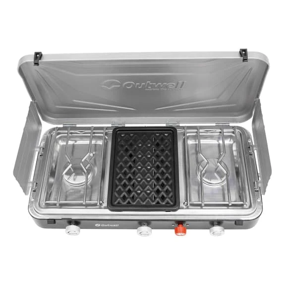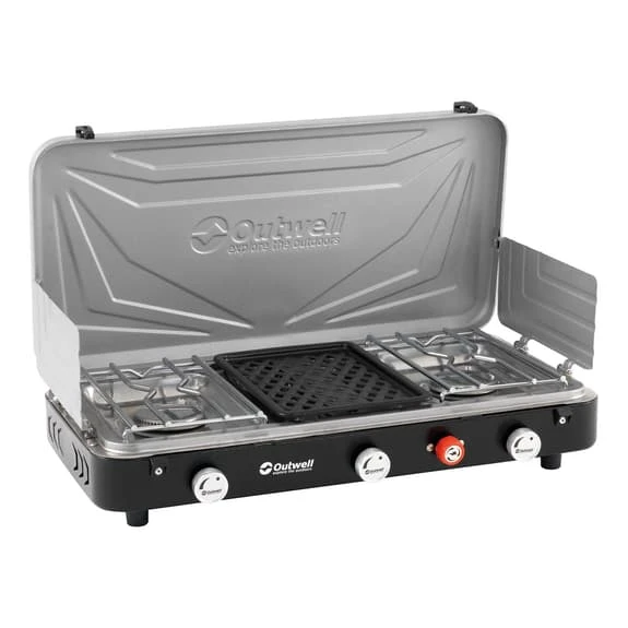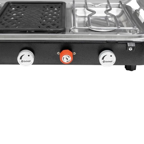 The Outwell Rukutu cooker + portable grill has a higher power grill, placed next to two burners for ease of use. Individual heat controls ensure the perfect temperature, while a removable stainless steel drip tray and non-stick grill make clean-up easy, even of bacon grease. Ideal for long family holidays. Connects securely to an LGP gas cylinder.