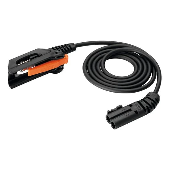The Petzl extension cord for DUO RL and DUO S headlamps allows the user to reduce the amount of weight on their head by moving the rechargeable battery to a pocket or on their back with the harness.