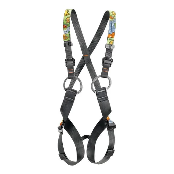 The Petzl Simba child harness is of the complete type. The hips of small children are not sufficiently formed so that a belt can rest. For your safety you have to wear a full harness such as Ouistitis.