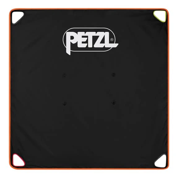 The Petzl Tarp rope cover is used to protect climbing ropes from the elements. With its generously dimensioned square base area of 1.4 by 1.4 m it is also suitable for long ropes. Provides your rope equipment with a clean surface to protect it from dirt and dust. It comes with an eye-catching orange border, so you always have an overview. Each corner of the canvas rope tarpaulin is provided with a different coloured loop.