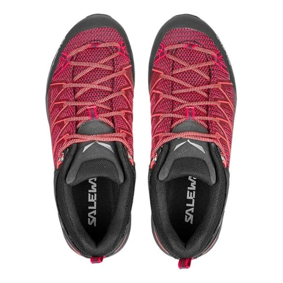 Salewa MTN Trainer Lite shoes for women are designed with alpine climbing and mountain use in mind. They have a robust blade that ensures excellent strength, while the waterproof and breathable GORE-TEX Extended Comfort lining will keep you dry and comfortable, no matter what kind of adventure you have in mind. The unique design features a special width designed to ensure an excellent fit and a perfect combination of flexibility and support. This shoe also features the patented 3F system, which connects the instep, sole and heel. Inside the shoe there is a shock-absorbing EVA midsole, for durable rebound, and it features a flexible ankle cuff and rubber toe as additional protection. On the outside, the sturdy sole ensures a great grip thanks to the Pomoca rubber compound and the pattern with deep lugs and grooves. It offers the versatility needed to cope with all types of terrain, from mud and grass to rock, ice and snow. With a Climbing Lacing system up to the toe to offer greater precision on technical terrain. Designed in Italy following the shoemaking tradition, the MTN Trainer Lite shoe is a three-season solution ideal for hiking and fast routes that makes no compromises on water resistance.