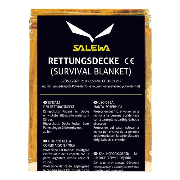 The Salewa Rescue Blanket thermal blanket protects you from hypothermia in case of emergency.