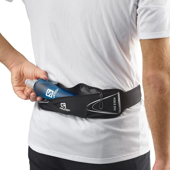 The Salomon Agile 250 hydration pack is ideal for long trail running races where great agility is required; its elastic fit offers enormous freedom of movement and easy access to hydration bottles and basic items.
