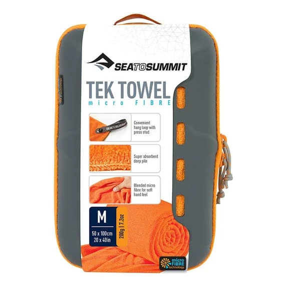 Sea to Summit Tek microfiber towels are super absorbent and quick drying, and are ideal for travelling and other activities: camping, boating, going to the gym, swimming pool or beach or drying your dog after bathing.