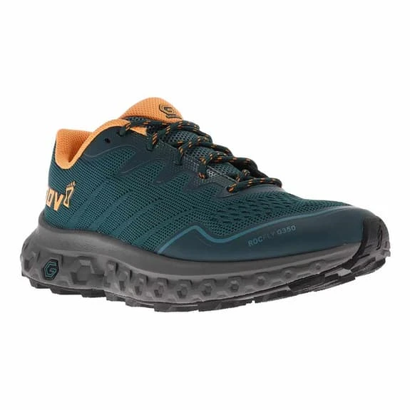 Inov-8 RocFly 350 Trainers include G-Fly and rubber G-Grip to guarantee bounce, cushioning, comfort and a tough grip. Designed for hikes and long trail days, Adapter-Flex, with 10 mm deep grooves, will allow it to adapt, react and mould itself to uneven terrain like no other. The upper material is quick-drying and extremely breathable, providing comfort, protection and tough customized durability for doing many kilometres.