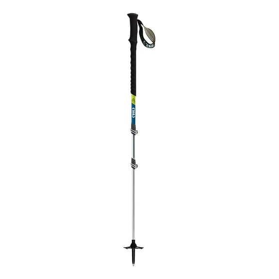 The TSL Tour Alu Compact 3 Cross Twist poles are made of 7075 aluminium divided into three adjustable sections using the External Lock System external fixing system. They include a multi-position EVA foam grip specifically for climbing. They have an ergonomic and comfortable strap. They have a Twist tip that allows the washer to be changed by rotation.