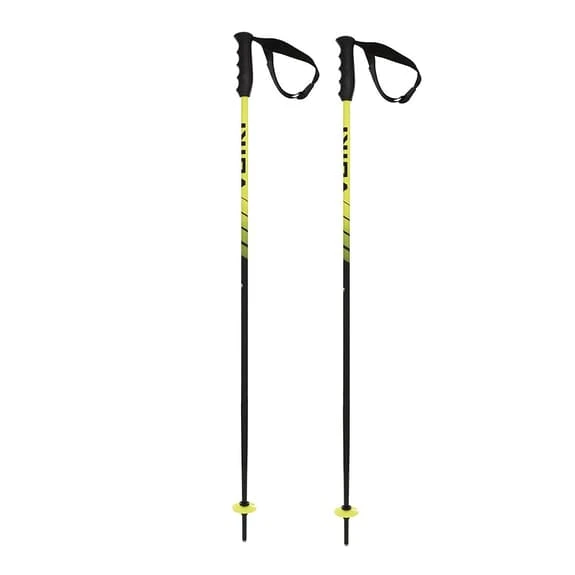 Völkl Speedstick Children’s Ski Poles (pair) have been specially developed for junior skiers and have a thinner handle and an excellent swing. They combine fast response with an adapted rigidity and reduced weight. Everything you need for competition ski poles. For example, the Junior competition handle has an anti-slip structure for an easy and safe grip, a robust Aluminium 5083 rod and competition snow basket with an efficiency-tested steel tip crown for grip in all competition conditions.